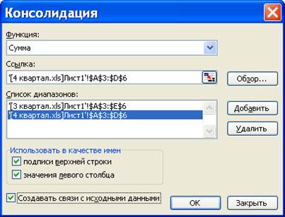 Цель. Изучение технологии связей между файлами и консолидации данных в MS Excel.