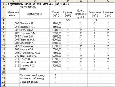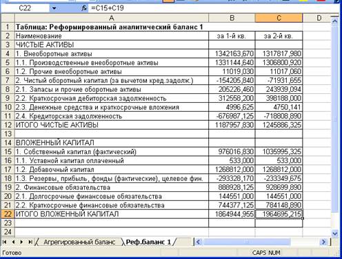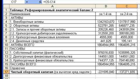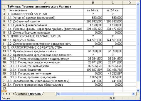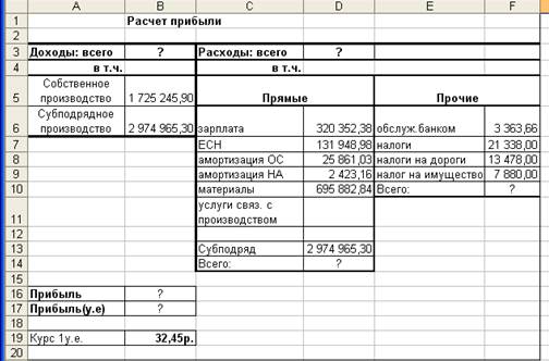 Рис. 4. Таблица расчета финансового результата (Задание 1)
