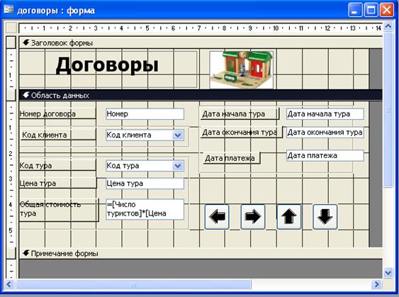 Рис.2.4. ФормаДоговоры в режиме Конструктора
