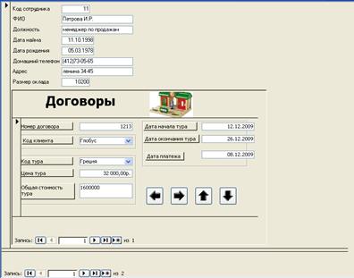 3.Загрузите БД Туризм. Проверьте работу макросов Autoexec и Открыть форму Договоры.