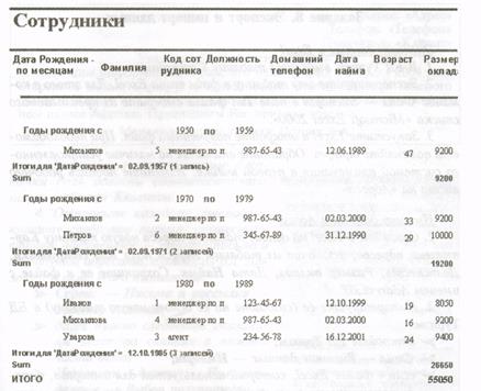 >• открытие таблиц (Открыть таблицу) Договоры, Клиенты, Страны, Сотрудники;