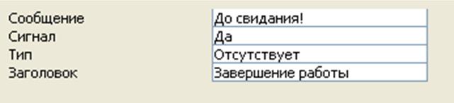 >• в той же строке, но в столбце Макрокоманда выберите макрокоманду Сообщение и задайте значение «Групповой клиент» для аргумента «Сообщение». Именно эта фраза отобразится на экране в окне сообщения при выполнении заданного условия. Для аргумента «Тип» установите значение «Информационное». При этом в окне сообщения, кроме текста, появится значок с изображением литеры «i» (стандартный вариант в Windows при выдаче сообщений), в поле Заголовок введите — «Внимание!»;