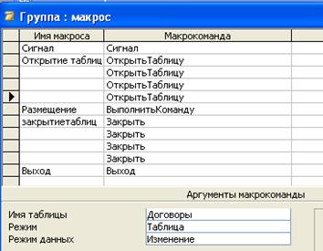 >• откройте новое окно макроса и перетащите форму Договоры в первую строку;