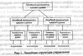 Основная особенность линейной структуры - простота связей (только линейные) и принцип единоначалия (рис.1). Она наиболее эффективна для мелких, малых, семейных предприятий, так как обладает простотой, четкостью связей, минимальной численностью аппарата. Однако все задачи, связанные с управлением, приходится решать одному линейному руководителю высшего звена. На больших предприятиях возникают проблемы перегрузки руководителя, недостатка времени для решения стратегических задач, низкой компетентности решений.