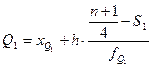 – сумма накопленных частот интервалов, предшествующих интервалу, в котором находится первая квартиль;