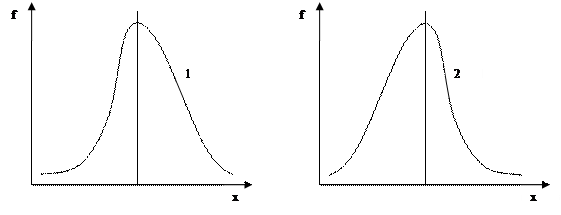 Рисунок 1 – Распределение: 1 – с правосторонней асимметрией; 2 – с левосторонней асимметрией.
