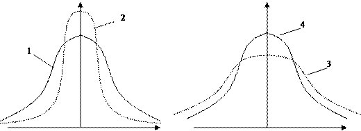 Рисунок 2 – Распределение: 1,4 – нормальное; 2 – островершинное; 3 – плосковершинное
