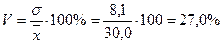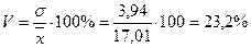 Наиболее часто применяемый в статистике показатель относительной колеблемости – коэффициент вариации. Его используют не только для сравнительной оценки вариации, но и как характеристику однородности совокупности. Совокупность считается однородной, если коэффициент вариации не превышает 33% (Ефимова М.Р., Рябцев В.М. Общая теория статистики: Учебник М.: Финансы и статистика, 1991 г., стр. 105).