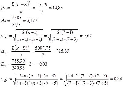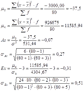 Определить показатели вариации и показатели формы распределения, сделать соответствующие выводы.
