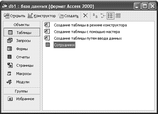 Для внесения информации и просмотра таблицы база данных открывается двойным щелчком на их названии в окне базы данных или с помощью кнопки «Открыть» (см. рис. 4).