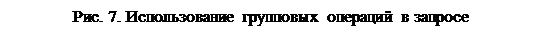 (Групповые операции). В появившейся в макете запроса дополнительной строке можно, нажав кнопку ▼ в правой части поля, выбрать операцию, которая будет выполняться по отношению к значениям соответствующего поля (см. рис. 7).
