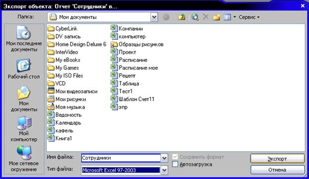 После этого сохранить отчет на диске в формате Excel