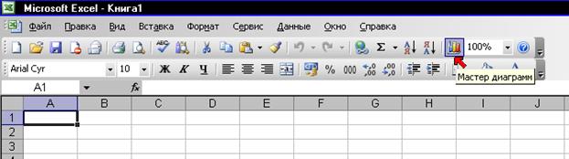 Для построения круговой диаграммы необходимо вызвать Мастер диаграмм специальной кнопкой на панели инструментов (см. рис. А).