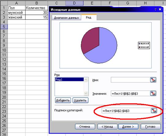 На закладке «Ряд» этого окна подобным образом следует указать названия секторов (рис. Г).