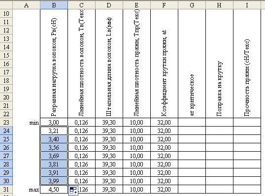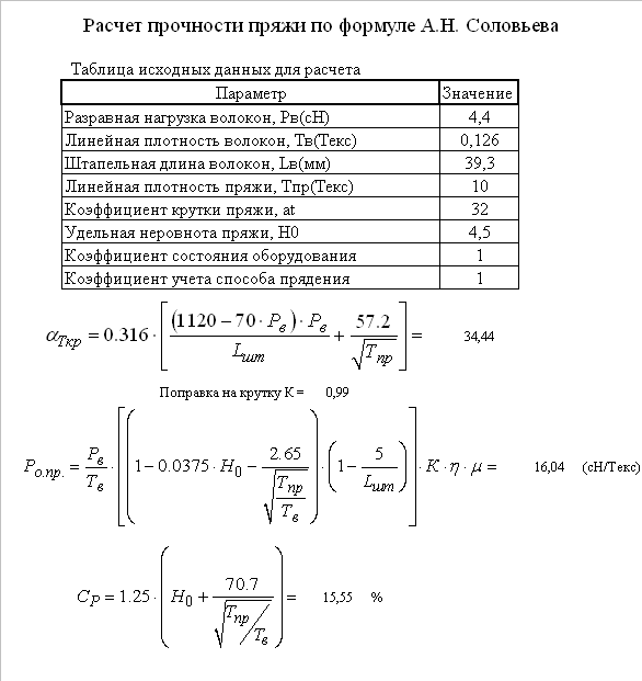 3 Расчет прочности пряжи по формуле А. Н. Соловьева