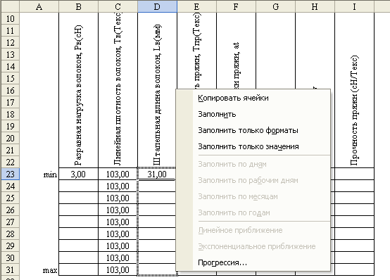 Теперь, когда рассмотрены многие простые действия, можно провести несложный расчет. Для примера давайте сделаем шаблон для прогнозирования прочности пряжи с использованием формулы проф. А. Н. Соловьева.