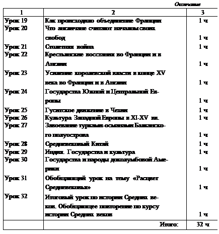 Тематическое планирование курса «Россия и мир в Средние