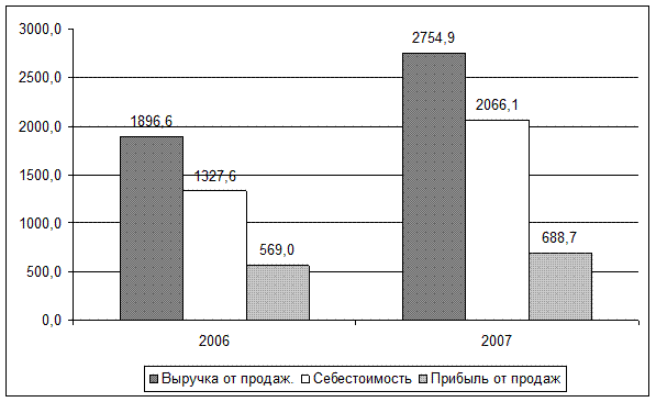 Из табл. 3.3. видно, что после внедрения мероприятий, объем продаж увеличится на 180%, или на 2203 тыс.руб. Себестоимость увеличится на 206,6 тыс.руб., или на 110%.Балансовая прибыль увеличится на 1997,26 тыс.руб., что составит 390%. Рентабельность производства увеличится на 29%. Производительность труда работников увеличится на 496 тыс.руб./чел., что составит 125%. Средняя заработная плата так же увеличится на 4,2 тыс.руб./чел, что составит 125%.