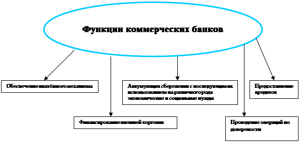 Коммерческие банки выполняют целый ряд необходимых для рыночной экономики функций, которые представлены в следующей схеме: