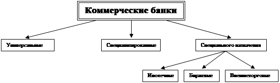 Двухуровневый характер банковской системы Украины означает, что последняя состоит из Национального банка Украины (центральный эмиссионный банк) и системы коммерческих банков разных видов и форм собственности. На схеме представлена классификация банков по видам деятельности: