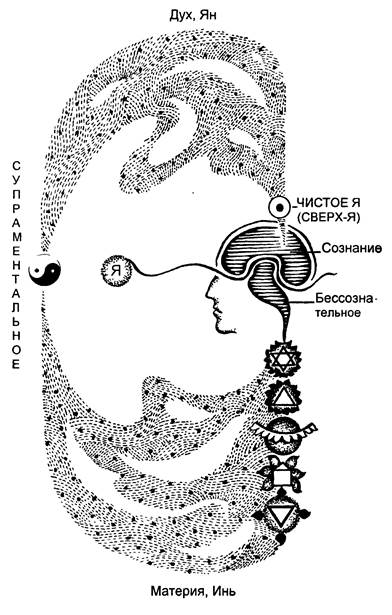 Каждый из нас является микрокосмом, в котором реализуются вселенские процессы. Таким образом, все мы участвуем в движении содержания бессознательного по направлению к уровню осознающего разума. И каждый из нас вовлечен в противоположное движение эго-разума, движущегося назад к бессознательному, чтобы восстановить связь с матрицей-прародительницей, давшей ему жизнь.