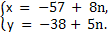 Решаем это уравнение относительно того из неизвестных, при котором наименьший (по модулю) коэффициент. 5х - 8у = 19 ![]()