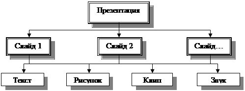 Любая презентация может восприниматься как система взаимосвязанных сложных объектов, которые, в свою очередь, состоят из совокупностей более простых: