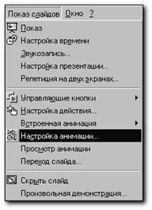 Посмотрите, какие еще команды возможно выбрать кроме команды Слайд… .