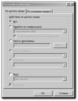 Назначение команд не требует дополнительных объяснений, потому что их функции определяются самим названием. По команде выбранной нами устанавливается ссылка на выбранный нами слайд из окна Гиперссылка на слайд.