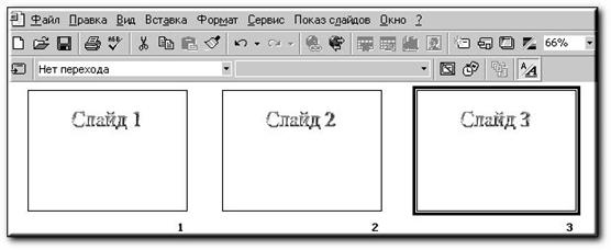 Дважды щелкнув на нужном нам слайде, мы выйдем в режим редактирования слайда (или по команде Вид-Слайды ).