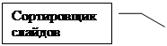 Вернуться к слайду Главное меню можно либо перемещая ползунок вдоль правой вертикальной линейки прокрутки, либо с помощью сортировщика слайдов, кнопка вызова которого находится в левом нижнем углу экрана. Можно также выйти на Сортировщик слайдов через главное меню по команде Вид-Сортировщик слайдов .
