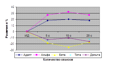 2. По данным злекгроэнцефалографических и полимиографических исследований установлено, что терапевтические сеансы на системе «Странник» приводят к быстрому и существенному повышению адаптивности (на 20,5%: Р « 0,001) и процентного содержания альфа ритма (на 31,6 /о,- Р « О,001) в суммарной ЭЭГ, а также к улучшению общего функционального состояния ЦНС (на 7,2%; Р « 0,001) за счет повышения скорости развития и силы тормозных процессов (СРТ) на 18,8% (Р « 0,001}, функциональной активности тормозных систем (АТС) на 15,2% (Р « 0,01),существенного сдвига баланса нервных процессов (БНП) в сторону торможения (на 19,4%; Р « 0,001) ~ соответственно, усиления тормозного контроля со стороны ЦНС, что является одним из важнейших условий для эффективной реализации управленческих и регуляторных функций головного мозга.
