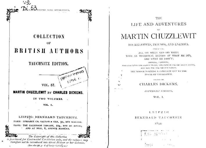 The Life and Adventures of Martin Chuzzlewit. Vol.2 / Dickens Chrles. - Copyright Edition. - Leipzig: Bernhard Tauchnitz, 1844. - (Collection of British Authors. Tauchnitz Edition. Vol. 58).