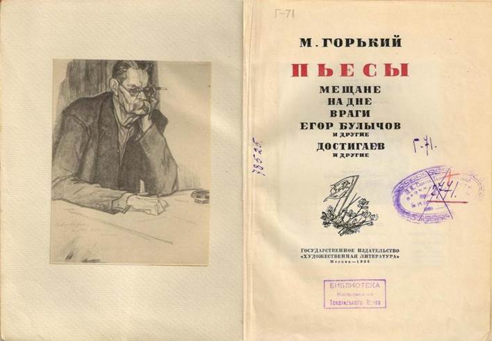 Пьесы; Мещане; На дне; Враги; Егор Булычев и др. / Горький Максим. – Москва: Госиздат «Худож. лит.», 1936. – 369 с.