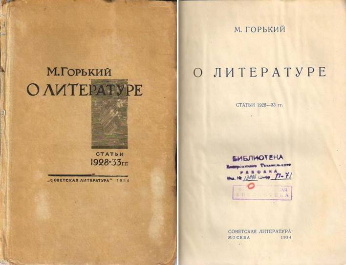 О литературе: Статьи, 1928-1933 г. / Горький Алексей Максимович. – Москва: Сов. Лит., 1934. – 297 с.