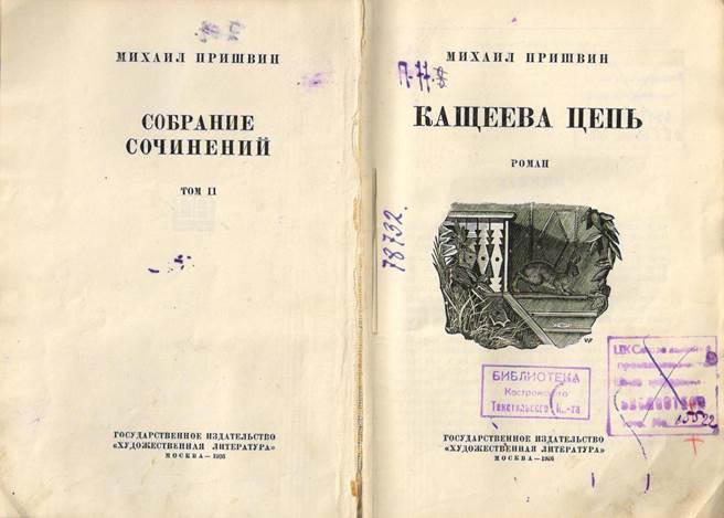 Собрание сочинений: В 4-х т. Т.2: Кащеева цепь: Роман / Пришвин Михаил Михайлович. – Москва: Худож. лит., 1936. – 637 с.