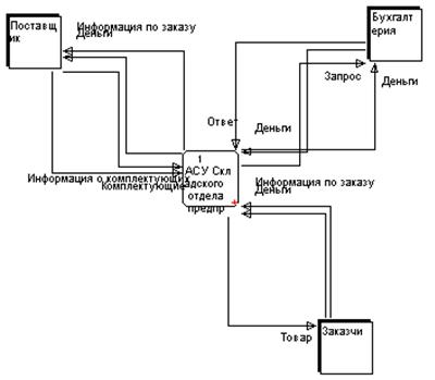 На основе анализа существующей системы обработки заказов была построена предконтекстная диаграмма потоков данных, отражающая сложившуюся на сегодняшний день ситуацию. Она содержит в себе два уровня (рис. 1 и 2).
