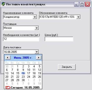 Рис. 1 4 . Форма оформления поставки комплектующих