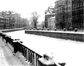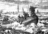 ужасные наводнения. В городских летописях особо отмечены два. 10 сентября 1777 г. вода, поднявшаяся на 10 футов и 7 дюймов, затопила весь Петербург, кроме Литейной и Выборгской частей. Буря вырвала с корнем тысячи деревьев и разрушила фонтаны в Летнем саду. А 7 ноября 1824 г. в некоторых местах города вода достигла 13 футов. Шел дождь и дул холодный ветер. Белая пена клубилась над водяными громадами, поглощая постройки и людей. Дворцовая площадь слилась с Невой в одно огромное озеро. Невский проспект стал рекой. По нему плыла мебель, дрова и перевернутые лодки.
