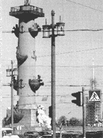 отвоевали целых 123 метра. И победоносно установили в 1810 г. на образовавшейся площади две колонны-маяка. В первую очередь они были призваны служить ориентиром для кораблей - у Стрелки долгое время находился порт. К тому же стали символом могущества и триумфа строителей города; колонны украсили искусственными рострами (носовой частью кораблей). Еще Рим возводил в честь победы над Карфагеном колонны с встроенными носовыми частями вражеских судов. Распространено мнение, что четыре скульптуры у подножия маяков - окаменевшие образы Невы, Волги, Днепра и Волхова. Документальных доказательств тому нет. Но доподлинно известно, что Тома де Томон толковал скульптуры так: "База каждой колонны украшена огромными фигурами, которые символизируют божества моря и коммерции". Вполне логично, ведь и биржа и порт нуждались в покровительстве небесных сил. Вологодский батрак Самсон Суханов, установивший колонны Казанского собора, и здесь пригодился городу. Это он отодвинул реку и умело изваял скульптуры из пудожского известняка.