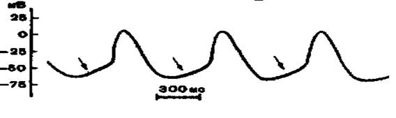 (0,05 с), после которой возбудимость сердечной мышцы окончательно возвращается к исходному уровню (рис. 1). Следовательно, особенностью возбудимости сердечной мышцы является длительный период рефрактерности (0,3 с).