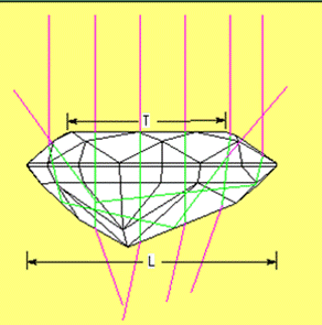 Рис. 3. Схема прохождения лучей в камне сделанном по примеру тех. условий английских соревнований огранщиков