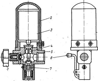 Двойной предохранительный клапан (рис. 2.2) соединен с рубашкой котла и имеет, корпус 5, в котором размещены два клапана: верхний 4 (паровой) и нижний 7 (вакуумный). Паровой клапан служит для сброса давления пара из греющей камеры при повышении его давления выше 49 кПа (0,5 кгс/см2 ). При повышении давления сверх допустимой величины пар приподнимает клапан, преодолевая усилие груза 3 определенной массы, и излишек пара с шумом выделяется в помещение. Испытывают и клеймят клапаны на заводе-изготовителе. Вакуумный клапан служит для поступления воздуха в рубашку при понижении давления пара в ней ниже атмосферного, что может происходить при остывании котла.