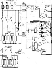 В цепи управления имеются также четыре сигнальные лампы, две кнопочные станции («Пуск», «Стоп») и переключатель ПК, За исключением одной кнопочной станции, все они расположены на станции управления. Лампа ЛСс.х включается при «сухом ходе» и сигнализирует об отключении электронагревателей котла из-за «сухого хода». Лампа 1ЛС работает при нормальном уровне воды в парогенераторе и сигнализирует о подаче напряжения на вводные клеммы котла, т. е. о том, что замкнуты контакты пускового аппарата цехового электрощита. Лампа 2ЛС сигнализирует о подключении одного тэна к сети контактами магнитного пускателя 2П. Лампа ЗЛС сигнализирует о подключении к сети пяти тэнов контактами магнитного пускателя 1П.