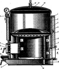 В зависимости от давления в варочном сосуде все котлы классифицируются на пищеварочные, работающие при атмосферном или незначительном избыточном давлении, и автоклавы, работающие при повышенном давлении (200…250 кПа).