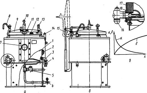 По способу обогрева различают котлы с косвенным и непосредственным обогревом. Котлы с косвенным обогревом получили наибольшее распространение. В качестве промежуточного теплоносителя в таких котлах используется вода (кипяченая или дистиллированная).