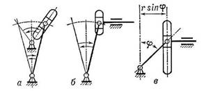 Рис. 3. Кривошипно-шатунный и кривошипно-ползунный механизмы