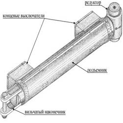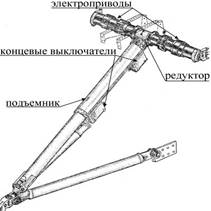 Перемещение гайки вдоль оси винта стальной трубой с вильчатым наконечником, присоединенным к подкосу поворачивает его верхнее звено вверх при уборке и вниз при выпуске стойки. На корпусе подъемника установлены два блока концевых выключателей, которые выключаю привод в крайних положениях стойки и обеспечивают ее надежную фиксацию за счет самоторможения винтовой пары (Рис.13.)