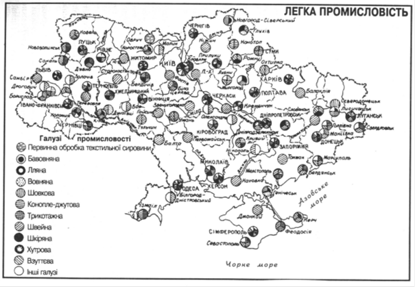 Легка промисловість є однією із найважливіших галузей витобництва непродовольчих товарів (див. на картосхему), яка забезпечує населення тканинами, одягом, взуттям тощо, а промисловість – кордом, технічними тканинами та ін.