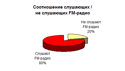 Соотношение долей (количества) слушающих и не слушающих FM-радио имеет следующий вид: